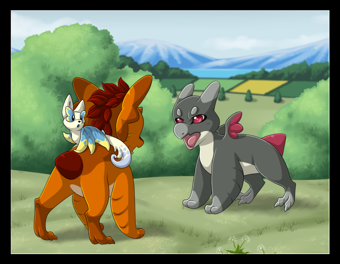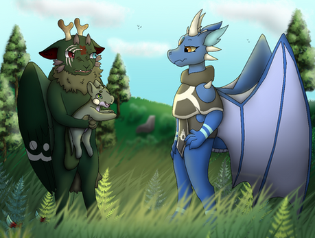 On a lighter note, I really like this picture! I didn't spend super long on it, but I like the framing the colors a LOT! I think it's very pretty and peaceful! Smeak with shell necklace was my thing last year, and it continues here! I think he looks very cute with it! BDE50C is such a pretty baby, I love the colors and design, and they just make me happy to draw!