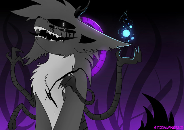 this is my new oc omg his name is wolf because he's a fluffy puppy. he has 4 tails, a lot of teeth, and likes cuddles. oh and he drools a lot..art & character (c) me