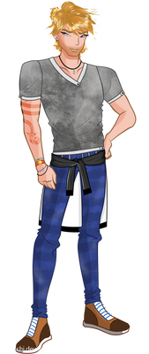 He was supposed to have 2 sleeve tats but i gave up. From now on hes wearing another shirt under his t-shirt that is turqoise and covers his arms