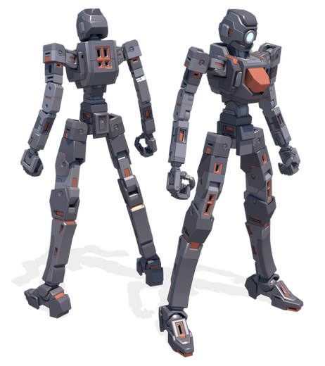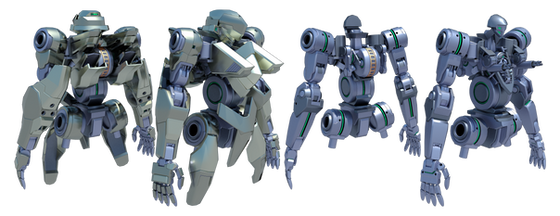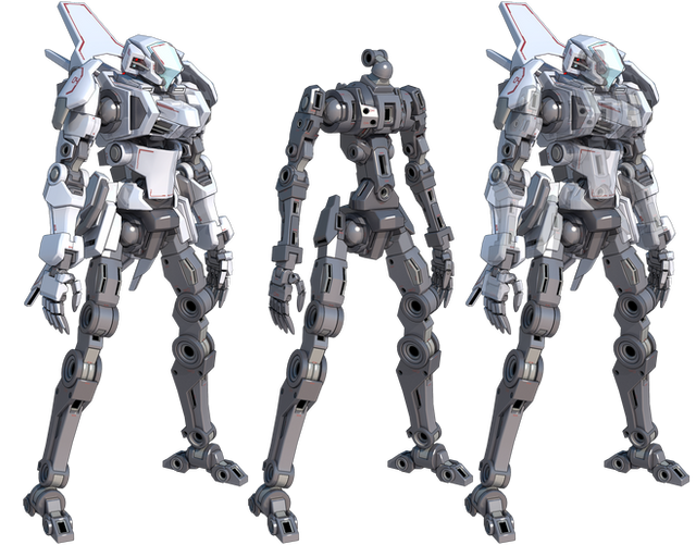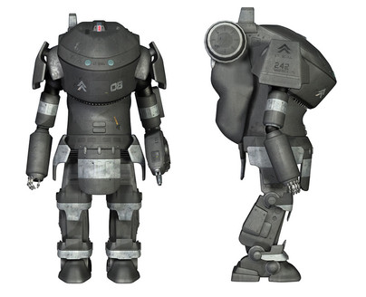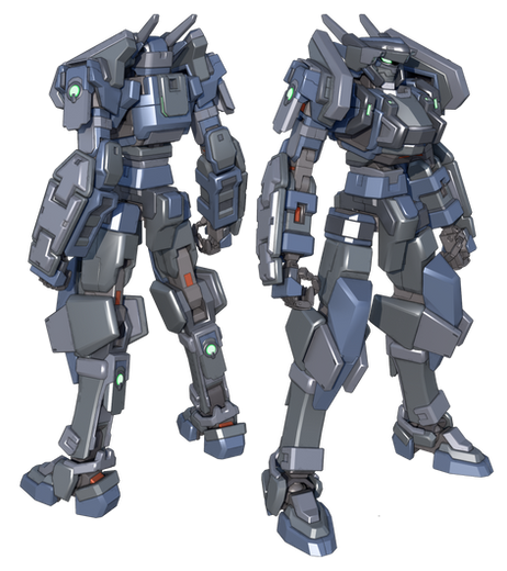 Finally finished this model. I'll put the armored version up later today. This is the completed "Inner Frame" of the model, without any armor or part modifications applied to it. The M307 is the first combat-capable BRACER, referred to as a Cuirass Type, derived from the frame of the civilian-use BRACER. Difference between the military-use and civilian-use versions include a sealed cockpit on the back, the introduction of a head camera system, and more articulate arms and fingers. Materials used in its construction are also military-grade, making it heavier but sturdier than a typical civilian-use BRACER.Not much has changed from the original inner frame design beyond the addition of small details and being a better render overall.