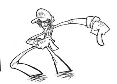 Prepping another sketch to send to Zach for coloring. We're assembling the entire cast for a big ol' NvS poster, finally. You'll eventually see EVERY major character on this - including all the heretofore unannounced ones. By the time we're done, this will be THE final cast.Of course, Mario starts the whole thing. I'll be starting with the Nintendo half, for the most part, as I have yet to do official artwork for many of them.
