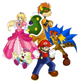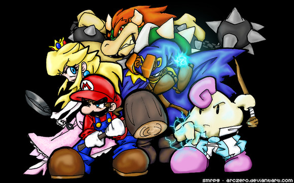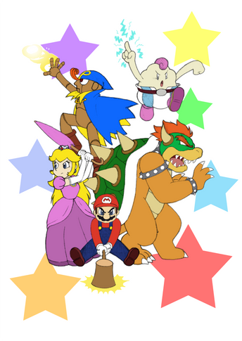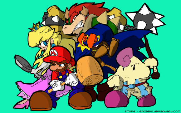 The Mario crew Β© Nintendo, Geno & Mallow Β© Squeenix