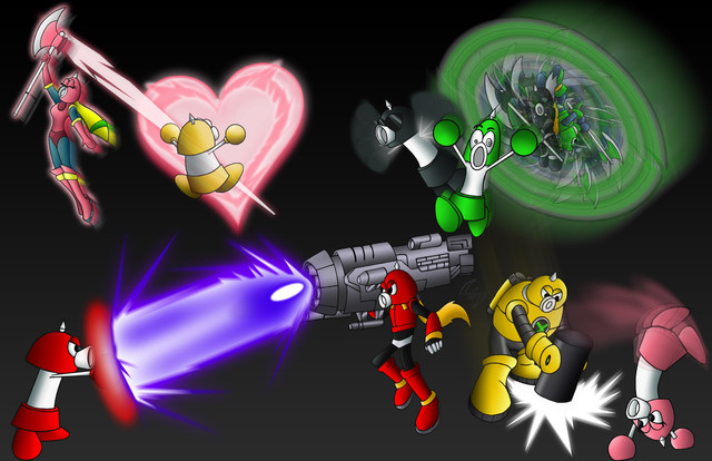 just havin' some fun over the weekend, trying to get back into the zone with drawing and coloring without the use of a tablet...the axem rangers are ยฉ Nintendo / Square Enix