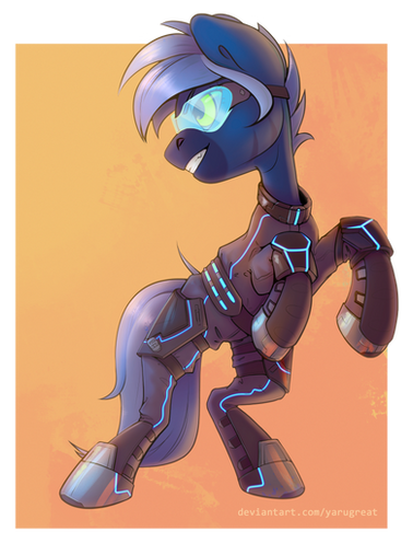 One of the commissions I owe to a friend who offered me a very generous amount for them. He's a programmer so the tron theme fits his pony REALLY wellI might have to do a progression picture so everyone can see how far I got with each session, I'm pretty proud for getting to this point in 3-4 hours (I'M GETTING FASTER!!!