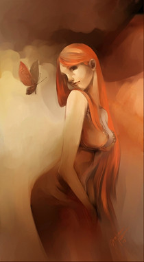 Wow, dont know what to think about this one... On the one hand her body, or some body parts look very strange o.O (her lower legs e.g. and the one arm seems to be a bit ... shifted^^) but on the other hand it has a great emanation!! And beautiful colours *-* I guess i like it^