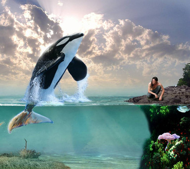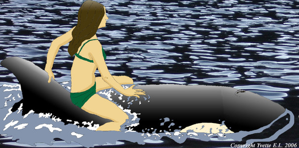 provided the Whale Rider and really furnished the title to this piece as well. To see how she looked before I put her on the Killer Whale go here . I did my best to make her look a little more wet, but I kind of missed the mark on that. However, my skill grows with each piece so when I am sure I am able I will re-edit this with a better wet look.