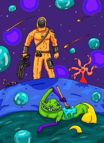 Wonderful job on the backdrop here, as well as the alien character.