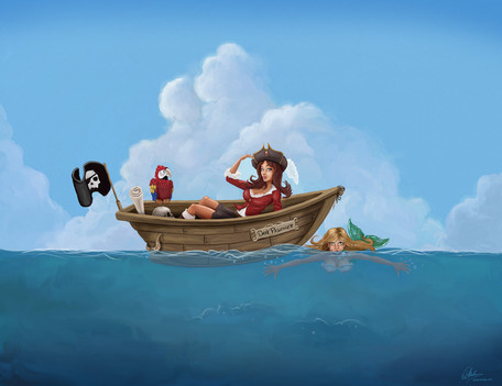 Another cartoon. Ended up looking a little like Agelina.Pencil sketch, lines and color in Photoshop.