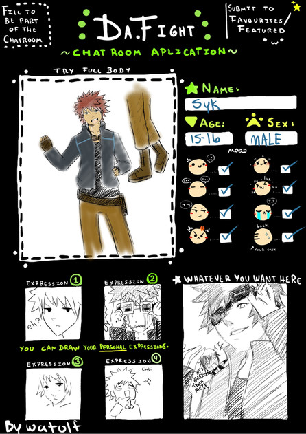 Syk app for official chat application in #da-fights:Bio: Syk, he's so sick! The only thing of himself is he doesn't remember his past, except his name. Trying to figure out where he came from and why he came to this unknown world but pleasantly traveling in this great adventure.