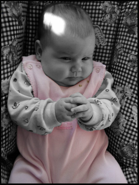 One of those spontaneous shots that just works. Jacqueline doing her best imitation of Mr FishyMr Fishy is a Bunnies by the Bay rattle named bubbles
