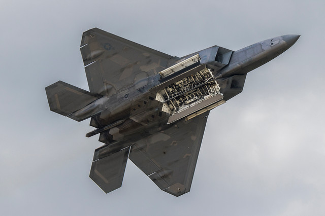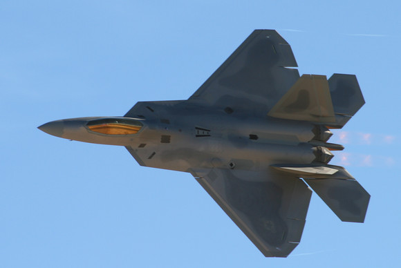 An F-22A making a topside pass during the Milwaukee Air and Water Show.An image from a "found" memory card from 2012 (updated).