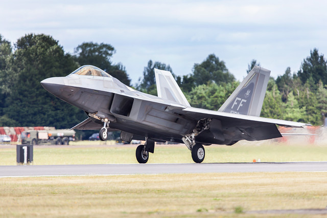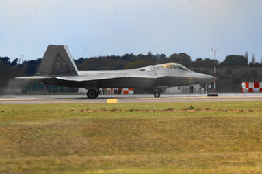 On rollout after touchdown. It bears the subdued insignia (low and behind the intake) of the 95th FS, Tydall AFB, FL.