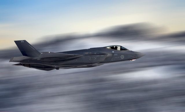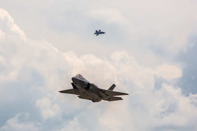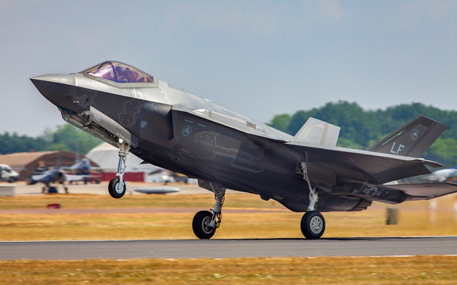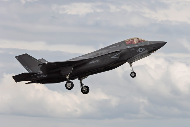 Naval version of the Lightning II taking off for it's twilight demonstration.