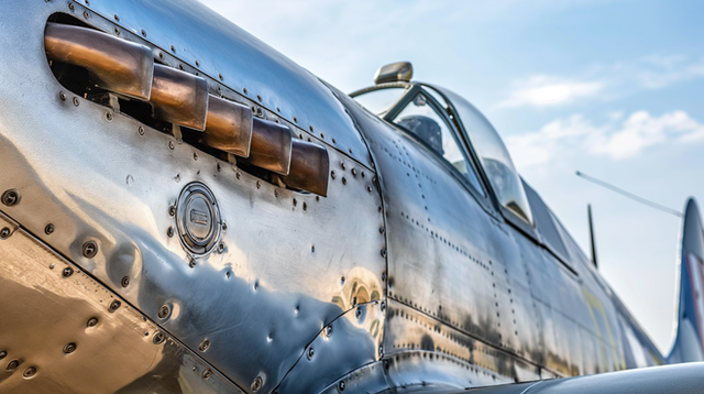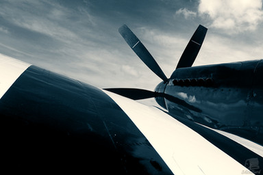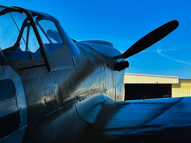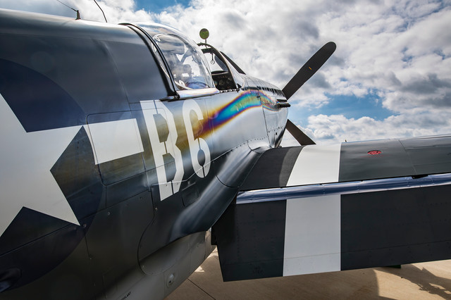 The setting sun reflected in the side of a P-51B. 7:30 P.M. Sunday.