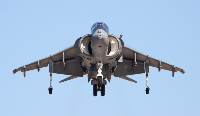 The only privately owned Sea Harrier FA.2 cools off after a demonstration hover.Art Nails owns her.