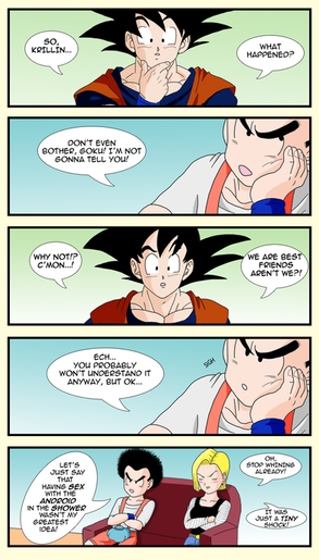Hahaha! This is a very funny comic. Like the panel where Bulma is laying on the couch with her hairy legs showing. Thats to cool!!