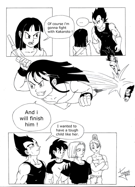 Also think about Bulma's character progression, through the series. She doesn't flirt as much in DBZ, as she does in DB (even the Zarbon scene is really exaggerated in the anime, in the manga, she just says: "Maybe a handsome guy's come to rescue us." or something to that effect). If she were the same as in DB, for instance, she'd flirt the heck out of Future Trunks, since she doesn't know who he is (but all she does is give him a harmless wink). Maybe it's just co-incidence, but her fickle behaviour lessens overtime and after motherhood, it's more or less, gone, so I'd pretty much count her out where cheating is concerned (that and absolutely NO evidence).