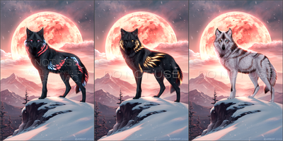 #wolves #digitalpainting #canine #digitalart #fantasy #fullmoon #moon #mountains #redmoon #snow #winter #wolf #ych
