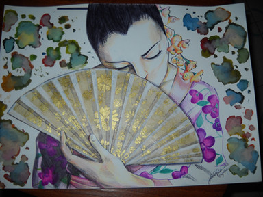 #japan #beautiful #cute #geisha #girl #japanese #japanesegirl #painting #pastel #pastelcolors #portrait #traditionalart #water