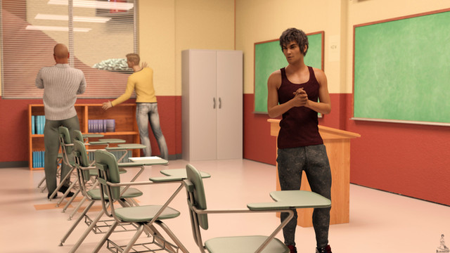 (how cute is the contact of your tiny bare foot on my sneaker, ol' teacher ! I like it. I feel excited ! At home I'll try a lot of things to dominate you, maybe I'll pressure you underneath my bare feet too, hehehe, why not ?)