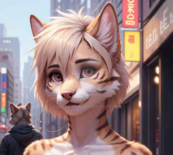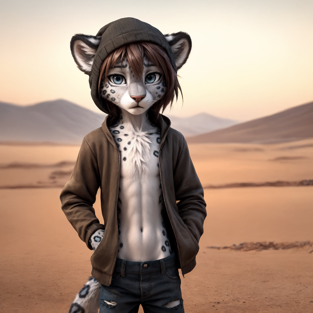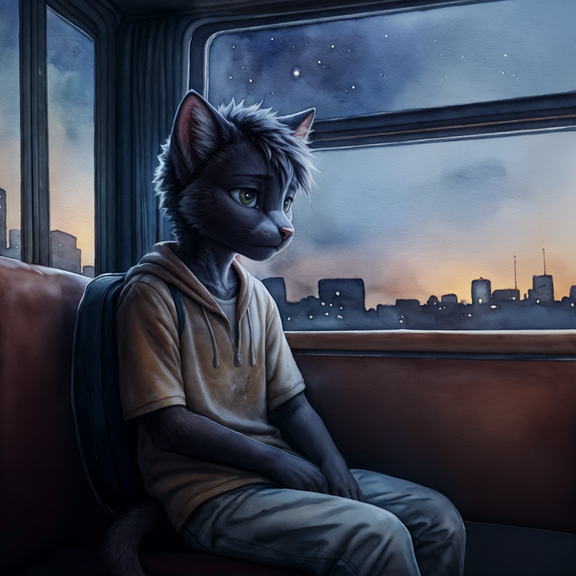 #feline #ai #anthro #cub #depression #earlymorning #furry #publictransportation #sadness #skyline #snowleopard #young
