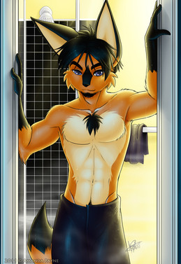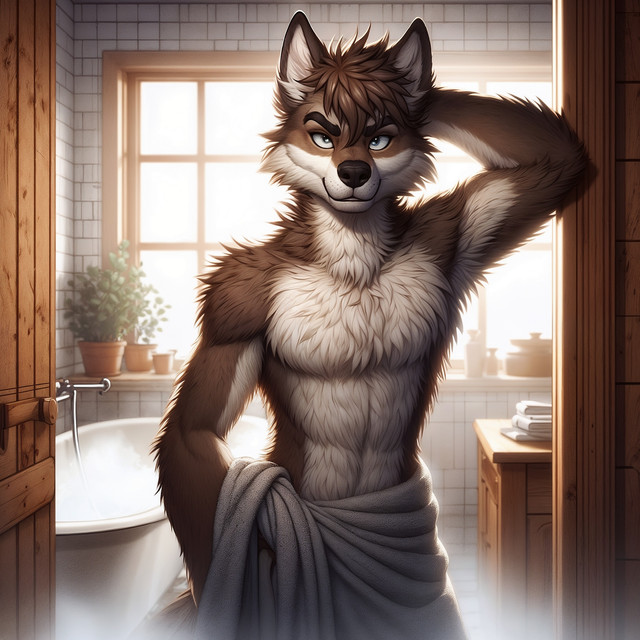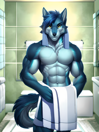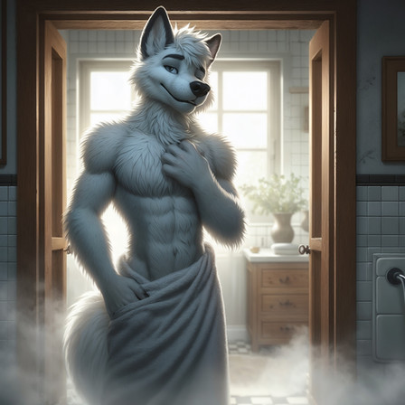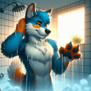 #anthro #boy #dog #furry #husky #male #man #shower #wet #bathroom