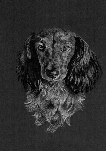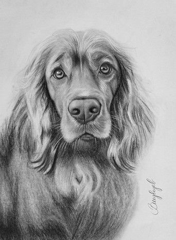 A black & white pencil commission of a Cocker Spaniel.Related content
