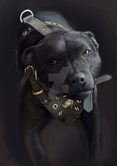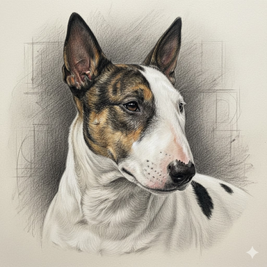 An A5, colour pencil portrait of a Staffordshire Bull TerrierRelated content