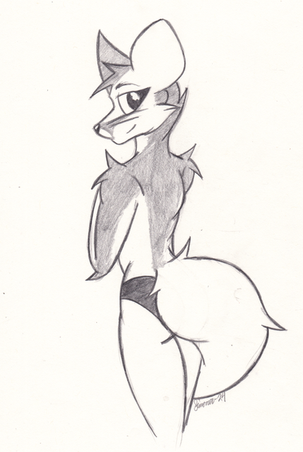 #anthro #ass #bigbutt #binturong #female #furry #longtail #panties #pinup #sketch #viverrid #lookingback #rearview #whiskers #buttfocus