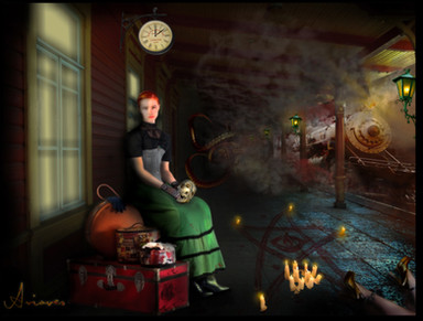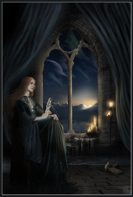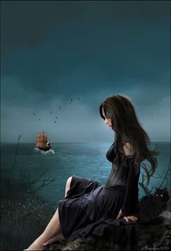 Wow, such beautiful scene and such great theme. reminds me of a snapshot from a great fairytale or legend and all those symbols in it (the cat, the ship, the arrows, the moon ) all play a roll in telling the story. Wonderuflly executed, fab idea!!!