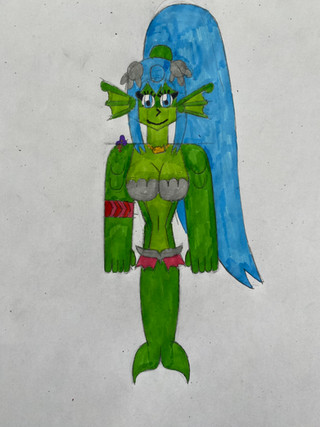 History: A sea monster. She is also bisexual, but has trouble picking a permeant lover. Her signature color is ocean blue.