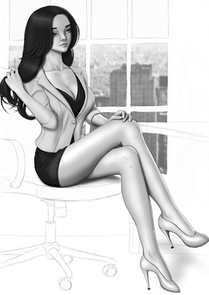 I don't know much about this character, it's another one from the commissioner stories. I'm just happy to draw a pretty girl wearing a tight turtle-neck top and a mini skirt :3