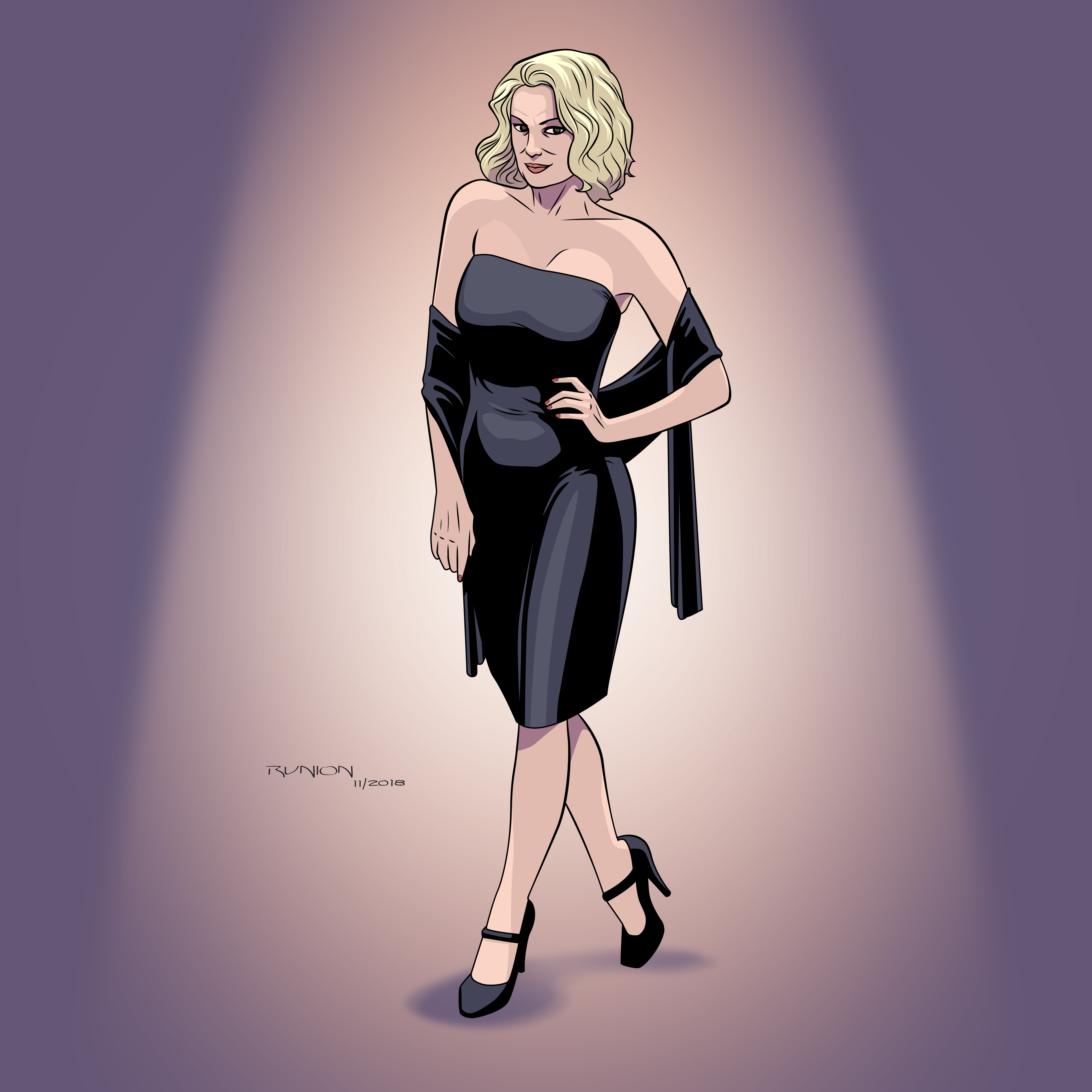 #longdress #nightdress #pinup #purple #sandals #sexy #strawberryblonde #cocktaildress #semirealisticanime