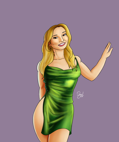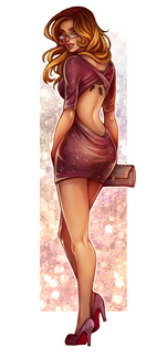 It's the same character from pictures I uploaded before. I was asked to draw her all sexy, showing her barely-there dress to her partner. I think she is rocking it :3