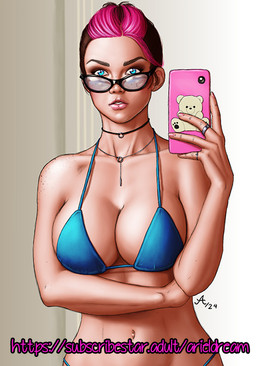 #digitalart #portrait #cartoon #originalcharacter #anime #characterdesign #animegirl #bigbreasts #brunette #cutegirl #freckles #fuchsia #glasses #mouth #oral #pen #pinkhair #plushies #selfie #sexygirl #teddy #wacom #wacomtablet #semirealisticanime #streamergirl