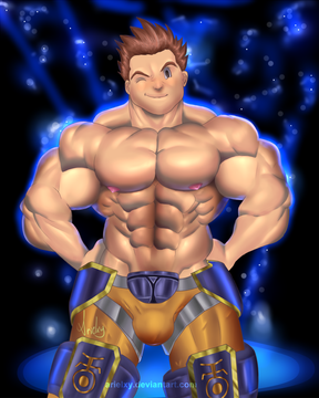 Overkill... He is a total hunk! I don't know how much flexible could be but surely he looks powerful, being big everywhere. That suit (interesting design btw) shows every curve, I hope you don't mind I already fantasize over him... Only his pecs, wow. And okay the bulge is a weapon of mass distraction, just his appearance should bring his enemies K.O.
