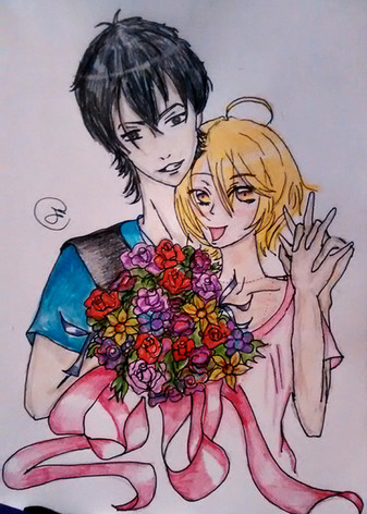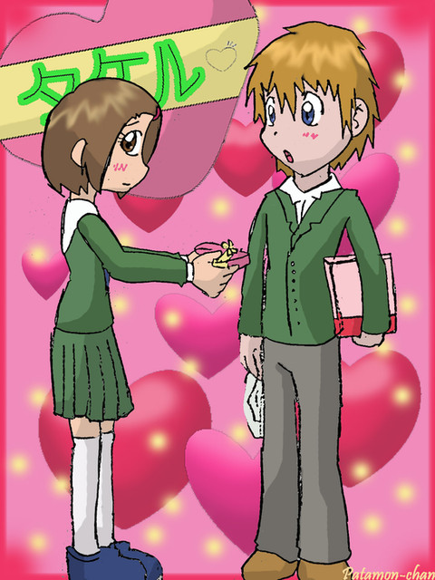 "First Steps", 2011For the Digimon Valentine's - White Day contest over at I was talking with a while ago about our favorite couples, and I said I really liked Jyoumi but I don't know if Jyou would have the guts to tell Mimi how he felt. Well, here he is doing just that! Mimi's asking him, "Are those for your girlfriend, Jyou?" Obviously not seeing the card addressed to her lol. I'm sure Jyou will find his tongue soon enough to tell her who they're really for