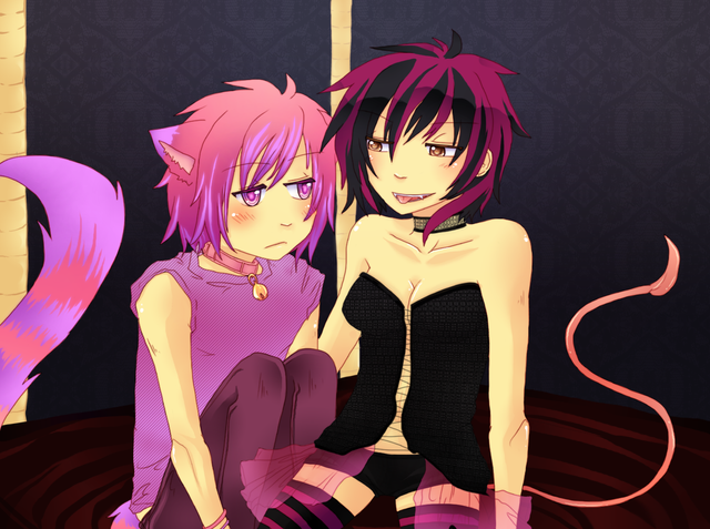 Just some concept art, The red hair character belongs to and the purple hair character is mine... I cheated on him, as I have no idea what to do for an outfit and... I just want to draw someone shirtless. lolPlease do not use this image ):< If you are not me, or then you should have no need to use it, as these are not your characters, but if you would like to use the background image, see credit below