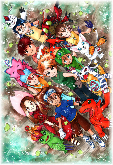 YAY!! A digimon 01 group pic! I love you for doing this! ^___^ I really love how you set this up. The motions and expressions fill up the space nicely.