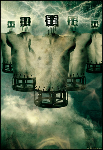 The concept I can only guess at (unless you feel like telling me), but regardless, the form is wonderous. There is only one minor gnitpick I could possibly have and that is with the shadows on the caged man.