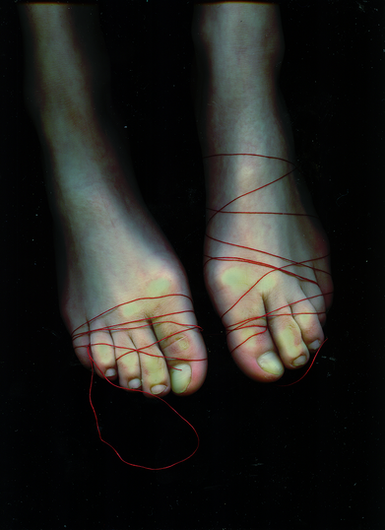 Very Interesting piece and good idea. I think the title works well with this because it conflicts the composition of the art. There is no way for these feet to run since they are detached and nailed to the ground. The feeling I get from this is frustration. Nice work!
