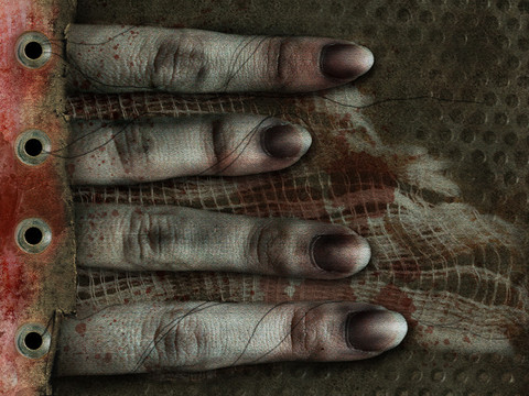the nails drilled into the feet with the thread/wire spun around the top forbidding him to move anywhere, and just the fact that the feet are cut off just make you realise the sarcasm dripping from the title.