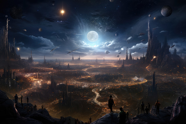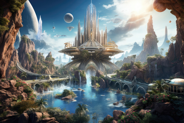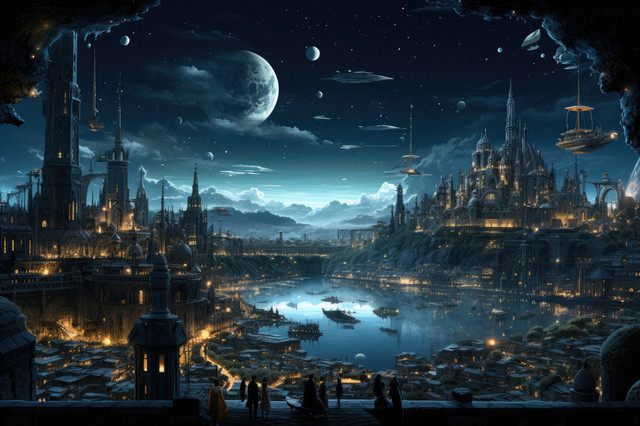 The Celestial Terminal emerges as humanity's gateway to the cosmos. A s a man-made wormhole, it transcends the boundaries of space and time. With the mere touch of a finger, daring adventurers and intrepid explorers can access the terminal, embarking on exhilarating journeys to distant corners of the galaxy. Governed by a complex network of quantum algorithms and propelled by cutting-edge energy sources, the Celestial Nexus Terminal revolutionizes space travel, enabling seamless and instantaneous transitions to uncharted realms. As civilizations connect and mysteries unfold, the terminal becomes a symbol of humanity's insatiable curiosity and relentless pursuit of knowledge in the vast expanse of the cosmos.+High Resolution image in the download for wallpaper/print.