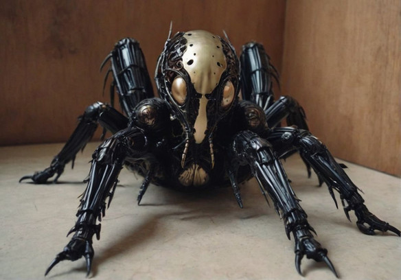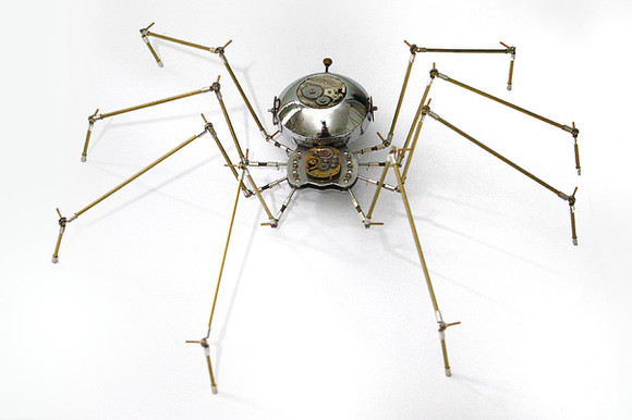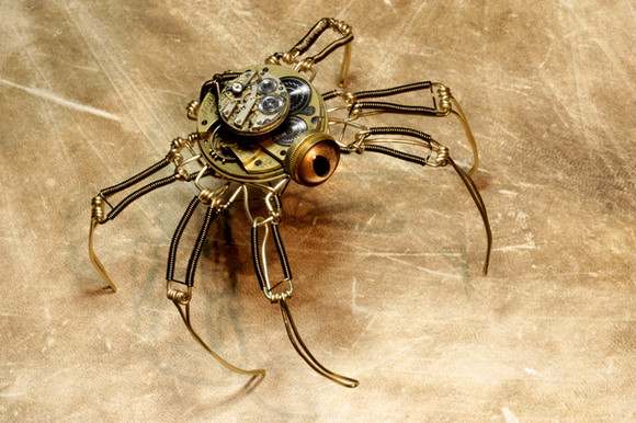 "No one knows where they originally came from...Their glowing heads make the city look eerily festive every time they roam the rooftops. They are thieves. They crave all things shiny and intricate, from brooches and coins to pens and lighters. They don't speak, but they seem to understand human languages -mostly curses-. I always thought they steal stuff to make more of their kind, you know. Under the city, where they sleep during the day.."I may have seen this somewhere else, so I don't claim any originality...but umbrellas look like spiders