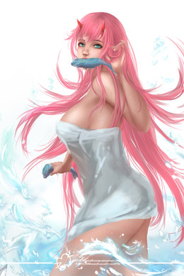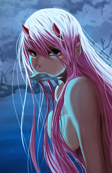 c'est une scene de l'anime ou elle rencontre son darling, il s'approche d'un lac en la cherchant et pouf elle sort Γ poil de l'eau avec un poisson dans la bouche mdrΒ Β