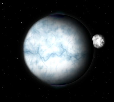 A planet, a moon, and a distant star. Although blue suns aren't exactly cold. To say the least. A very blue and gray themed scene.Related content