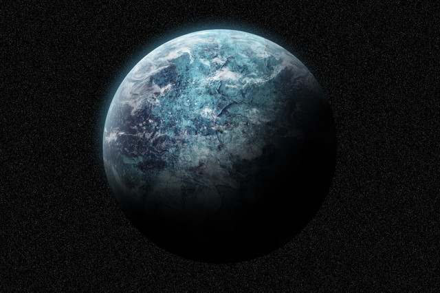 Tried a few new things with this one. Made two different versions of the planet, then merged them. One was black and white. It's an icy world with cold oceans. What do you think?Related content