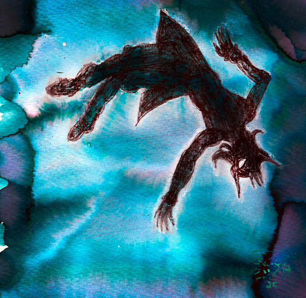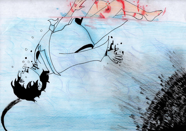 Just something I doodled while I was in algebra class.As for why he's sinking, I honestly don't know. I just wanted to use my blue fine-point sharpie. >3>;