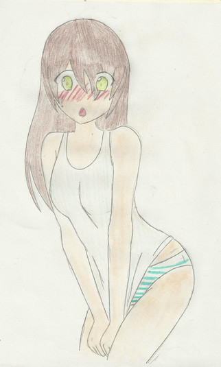 One of my older characters, Misaki, feeling insecure about their body.I felt like drawing something angsty... and Misaki.