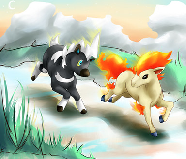 "This is a bad idea!" Paprika exclaimed, clinging onto the back of the young Ponyta as he galloped head first into the fog."What are you talking about! This is where all the action is at!" He brayed excitedly, not slowing down. At this point the fog was so thick that they couldn't see more then five feet in front of themselves. Fennels hooves thudded loudly against the damp ground, Paprika having to use all her strength to just hold on.
